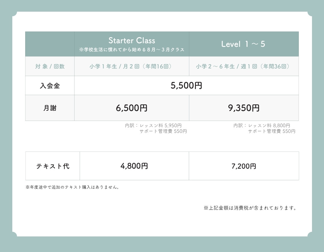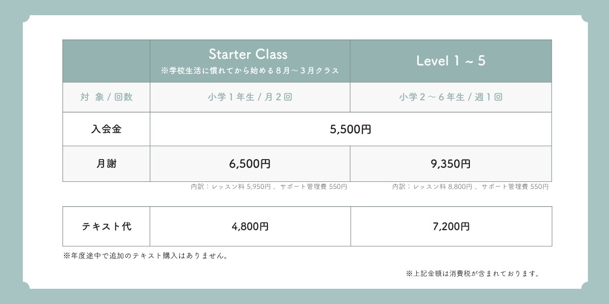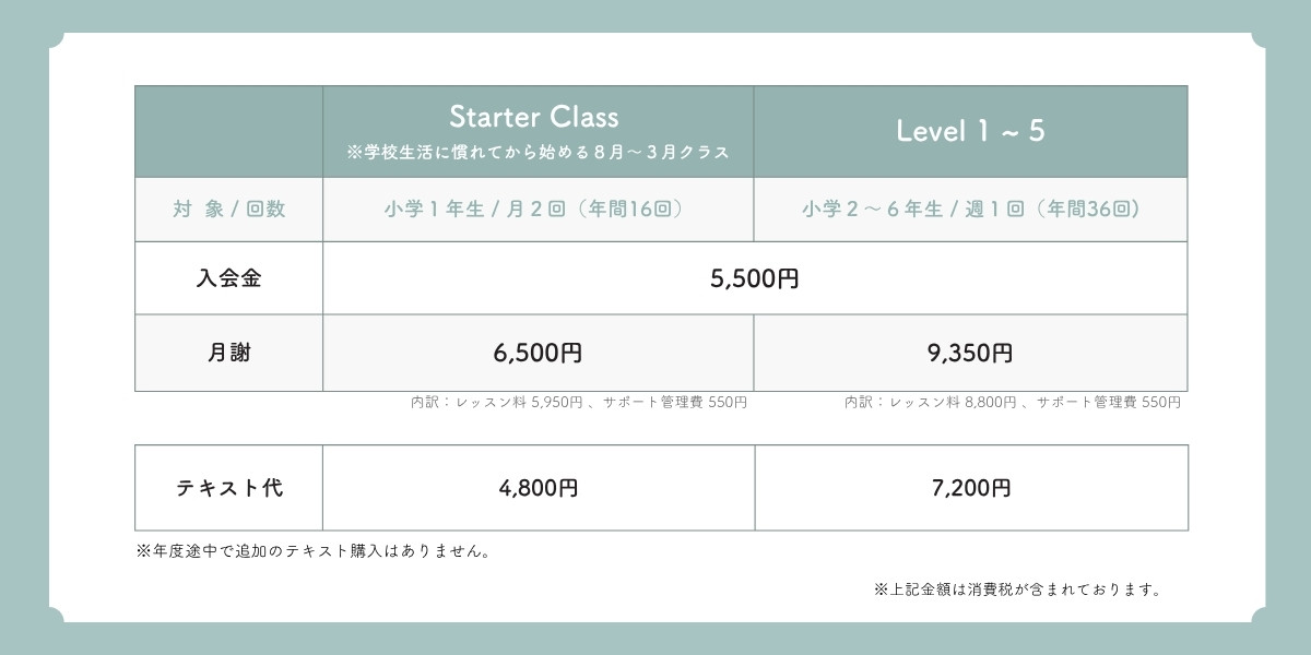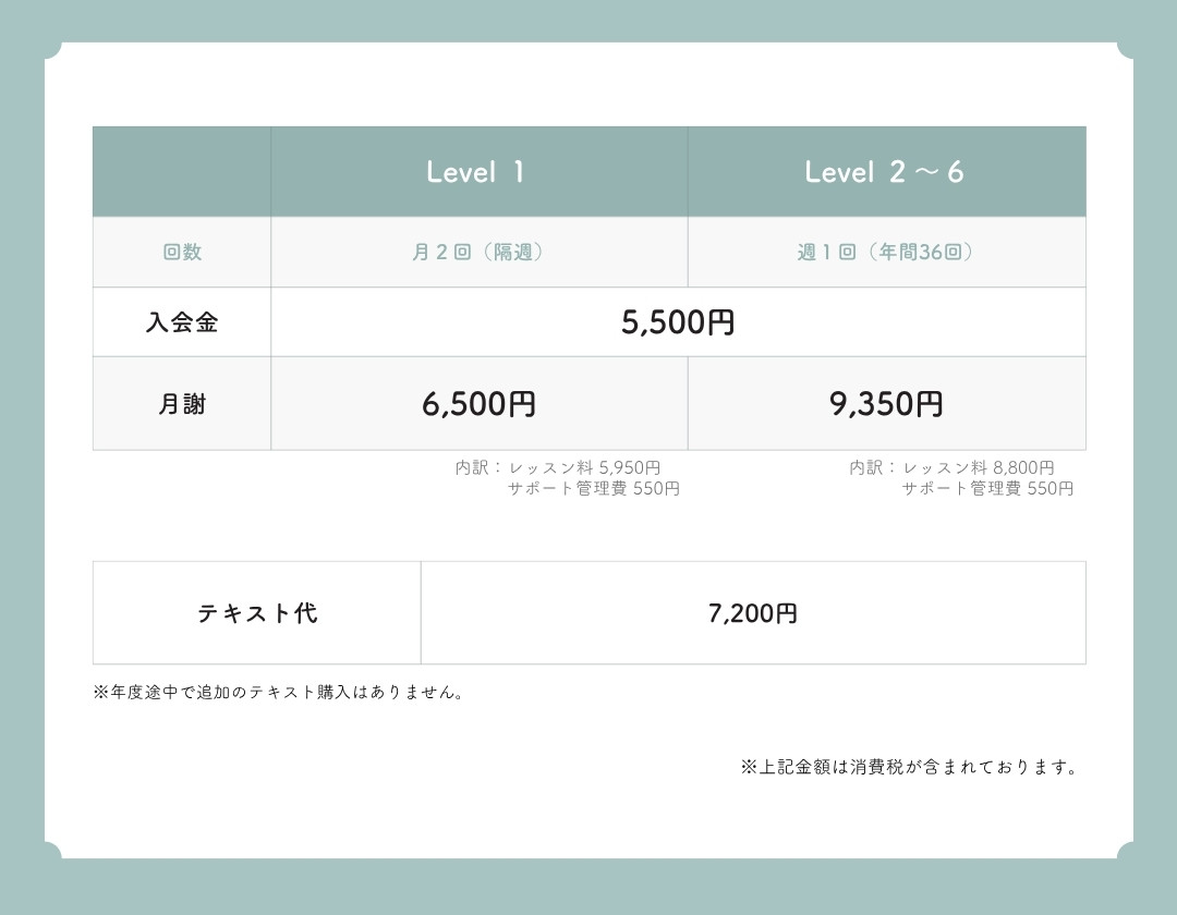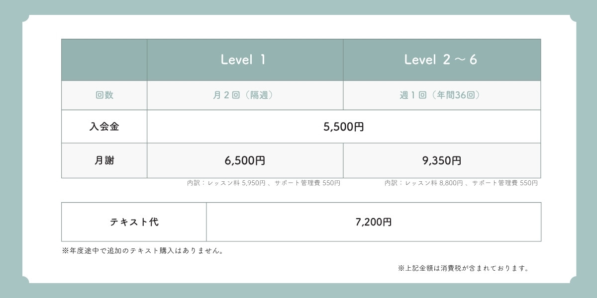 ※お手続き時期によっては、2カ月目のレッスン料・サポート管理費を現金でいただくこともございます。